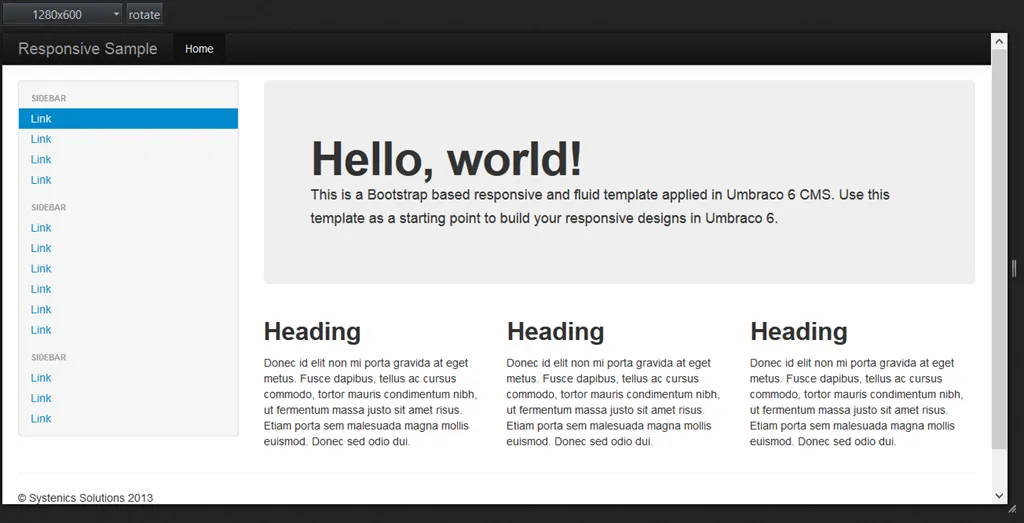 Building responsive, fluid HTML5/CSS3 based websites are a rage these days delivering the best ROI for clients investing in building new web sites. Building a single website which adapts itself depending on the device screen size gives end users richer experiences. There are several ways of building responsive websites, one of the popular ways to to use an existing framework like Bootstrap from Twitter which provide base scaffolding to quickly build responsive websites. In this blog post I am going to focus on how to integrate Twitter Bootstrap with Umbraco 6 and MVC/Razor display engine to build a HTML5/CSS3 based responsive website. The goal is to build a simple single page responsive website similar to the fluid bootstrap sample and focus on the integration part so that you can build more complex layouts as required. I plan to build upon this sample in future blog posts.