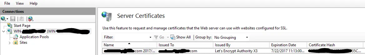 While developing ASP.NET or ASP.NET MVC Web or WebAPI applications, we use IIS self-signed certificate to test sites locally or on test servers with HTTPS enabled. Such HTTPS websites throw a warning message when they are accessed first time from any browser. If you are using WebAPI with HTTPS and trying to access those APIs from Ionic or iOS mobile applications, then it will not work. This article focuses on configuration of Let’s Encrypt SSL Certificate with AuctionWorx web application.